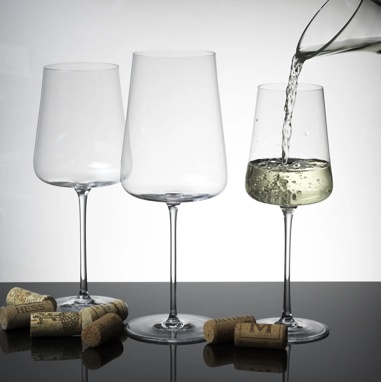 Important issues are seeing the edges, seeing the quality of the stemware and or nuances which may be details that really need to stand out. There are several approaches to photograph glass. We use whichever meets the needs of the specific piece. If we are shooting wine with food, then it crosses over to a 'lifestyle or glamour shot.' The lighting changes, not so much as a product image, but a more 'realistic' approach, to the image as a whole. Like it could be in your home. See it in your home. Sell a story, sell your product.